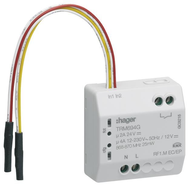 Hager TRM694G Funk UP Schaltaktor 1fach Binäreing. 2f 230V/4A 24VDC/4A 12VDC/2A
