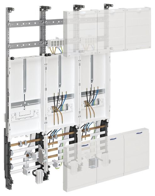 Komplettfeld, universZ, 1050mm, 2Zählerplätze/SG, 3-feld, Ausführung Bayern. Zählerschranklösung Schrankgehäuse nach DIN VDE 0603/1, Maßnorm DIN 43 870 zur Aufputz, Unterputz oder teilversenkter Montage. Bestehend aus Schrank mit Tür aus pulverbeschichtetem, eingebranntem, stabil profiliertem 1 mm dickem Stahlblech. Innenauskleidung komplett aus Kunststoff. Leitungseinführungen oben und unten durch eingebaute Kunststoffflanschplatten. Rückseitige Vorprägung im Kunststoffteil. Sammelschienendurchführungen als beidseitige seitliche werkzeuglos zu öffnende Flansch im unteren Bereich als Möglichkeit zur Sammelschienenverbindung von verschiedenen Schränken oder in Verbindung mit einem Kabelanschlusskasten und Anschlusssatz. Neben der Durchführung im NAR zusätzlich Öffnungen im Bereich des AAR (für Bauhöhe 1100 und 1400 mm) und RfZ (für Bauhöhe 1100mm). Tür frontbündig mit innenliegenden, justierbaren Scharnieren, wahlweise rechts oder links anschlagbar mit 110° Öffnungswinkel. Türverschluss mit Vorreiber. Türverschluss durch andere Schließungen austauschbar. Schrank nebeneinander und übereinander anflanschbar. Schrankgröße 1- bis 5-feldrig mit 72 bis 540 Platzeinheiten (PLE). Hinweis: Die Hauptleitung ist nach VDE-AR-N 4100:2019-04 von unten oder seitlich in den unteren Anschlussraum des Zählerschrankes einzuführen und dort anzuschließen. Höhe: __ mm (1100mm oder 1400mm) Breite: __ mm Tiefe: 205 / 160 mm, RAL-Farbe: 9010 Schutzart 44, Schutzklasse II Nennstrom des Sammelschienensystems 250 A Ausführung nach VDE-AR-N 4100:2019-04 Zähleranlage für __ Zählerplatz(e). Nach den technischen Anschlussbedingungen (TAB) des VNB __ für: __ Elektronische Haushalts-Zähler (eHZ) oder __ Zähler mit 3-Punktbefestigung (3HZ). __ für Bezugsanlagen mit haushaltsüblichem Verbrauch max. 63 A (10mm²) nach DIN 18015-1 ( __ Wohnungen, __ Allgemein, __ Reserve, __ Wärmepumpe) __ für Dauerstromanwendungen max. 32 A (10 mm²) nach VDE-AR-N 4100:2019-04 (z.B. PV bis 22 KW) __ für Dauerstromanwendungen max. 44 A (16 mm²) nach VDE-AR-N 4100:2019-04 (z.B. PV bis 30 KW) __ für Zählerplätze mit mehr als 63 A im Aussetzbetrieb bzw. 44 A im Dauerbetrieb (Wandlermessung) Nennstrom _ A, Nennleistung _ kW __ Tarifrundsteuerempfänger als Dreipunktausführung alternativ __ Tarifrundsteuerempfänger als Hutschienenausführung __ Verteilerfeld ( __ PLE), mit/ohne Sammelschienen zur Einspeisung __ Verteilerfeld ( __ PLE) mit APZ-Raum nach VDE-AR-N 4100:2019-04, mit/ohne Sammelschienen zur Einspeisung __ Kommunikationsfeld, 1- oder 2-feldig __ Kommunikationsfeld mit APZ-Raum nach VDE-AR-N 4100:2019-04, mit/ohne Sammelschienen zur Einspeisung __ Stück SLS Schalter Hager HTS3xxE in __ A.. Spannungsabgriff für Spannungsversorgung Zusatzgeräte nach VDE-AR-N 4100:2019-04: __ vor dem SLS mit Sicherungsbox steckbar 25 kA __ vor dem SLS mit LS-Schalter 10 A / 25 kA __ hinter dem SLS mit Sicherungsbox steckbar 25 kA. Überspannungsschutz mit Kombiableiter Typ 1/2/3 zur Sammelschienenmontage im UAR. Zur Einhaltung der Anforderungen nach DIN VDE 0100-443 und -534: ___für TNS/TT-Netz, ohne äußeren Blitzschutz, Vorsicherung im HAK ? 160 A ___für TNC-Netz, ohne äußeren Blitzschutz, Vorsicherung im HAK ? 160 A ___für TNS/TT-Netz, mit äußeren Blitzschutz, Vorsicherung im HAK ? 160 A ___für TNC-Netz, mit äußeren Blitzschutz, Vorsicherung im HAK ? 160 A ___für TNS/TT-Netz, mit äußeren Blitzschutz, Vorsicherung im HAK ? 315 A ___für TNC-Netz, mit äußeren Blitzschutz, Vorsicherung im HAK ? 315 A Absicherung Keller, WM, Trockner (wenn TAB / DIN konform) pro WE (max. 6 PLE) __ Stück FI/LS Schalter 10 kA, 16 A, 30 mA (ADA516D). Allgemein-Verteilerfeld bestückt mit: __ Stück LS Schalter 6 kA, 16 A (MBS116) __ Stück FI/LS Schalter 6 kA, 16 A, 30 mA (ADS916D) __ Stück RCD Typ 40 A 4-polig, 30 mA (CDS440D). Bestehend aus: __ Stück ZB__S, Zählerschrank __ Stück ZK__ Komplettfeld für __ Zähler __ gewähltes Fabrikat/Typ: HAGER/univers Z oder gleichwertig liefern, montieren und betriebsfertig ans