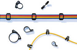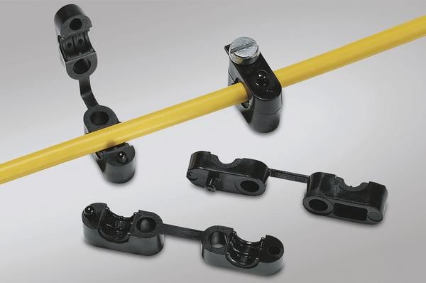 Zugentlastungsschellen zum führen von Leitungen bis 8,5 mm Bündeldurchmesser. Die Zugentlastungsschelle wird mit Hilfe einer M4 Schraube an der entsprechenden Montagefläche befestigt.