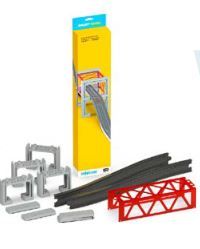 Inhalt: 2 beidseitige Rampengleise 4 stapelbare Stützpfeiler mit Abdeckungen 1 klappbarer roter Brückeneinsatz