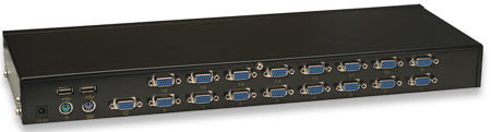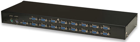 | Schnittstellen | 16 x KVM - HD-15 ¦ 2 x Tastatur (USB) / Maus (USB) - Type A ¦ 1 x Tastatur (PS/2) ¦ 1 x Maus (PS/2) ¦ 1 x VGA - HD-15 |
