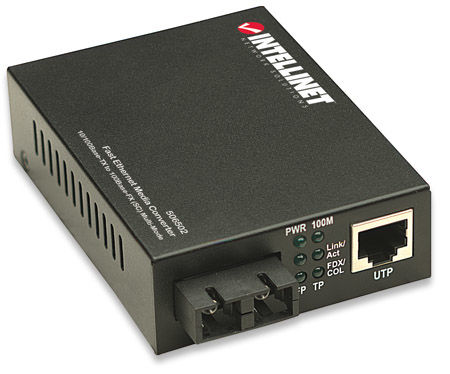 INTELLINET 506502 Fast Ethernet Medienkonverter 10/100Base TX auf 100Base-FX (SC) Multimode, 2 km
