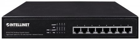 INTELLINET 560641 8-Port Gigabit Ethernet PoE+ Switch IEEE 802.3at/af Power-over-Ethernet (PoE+/PoE)-konform, 140 W, Endspan, Desktop, 48,3 cm ( 19 Zoll ) Rackmount