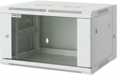 INTELLINET 712026 48,3 cm ( 19 Zoll ) Wandverteiler mit Schwenkrahmen, 15 HE, 770 (H) x 600 (B) x 550 (T) mm, grau Vollständig montiert, Stahlrahmen, Maximale Traglast 30 kg, Türanschlag links und rechts einsetzbar