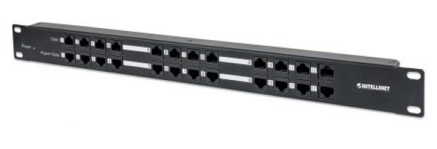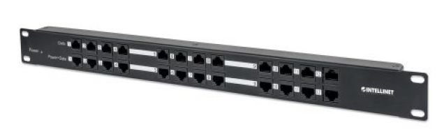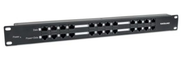 INTELLINET 720342 12-Port Passives PoE-Patchpanel / Midspanlösung Patchpanel mit 12 RJ45-Ports
