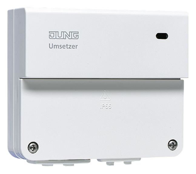 Der Umsetzer wird in Verbindung mit einem Jalousieeinsatz Universal (Art.-Nr. 1731 JE) oder Binäreingängen des KNX-Systems betrieben.