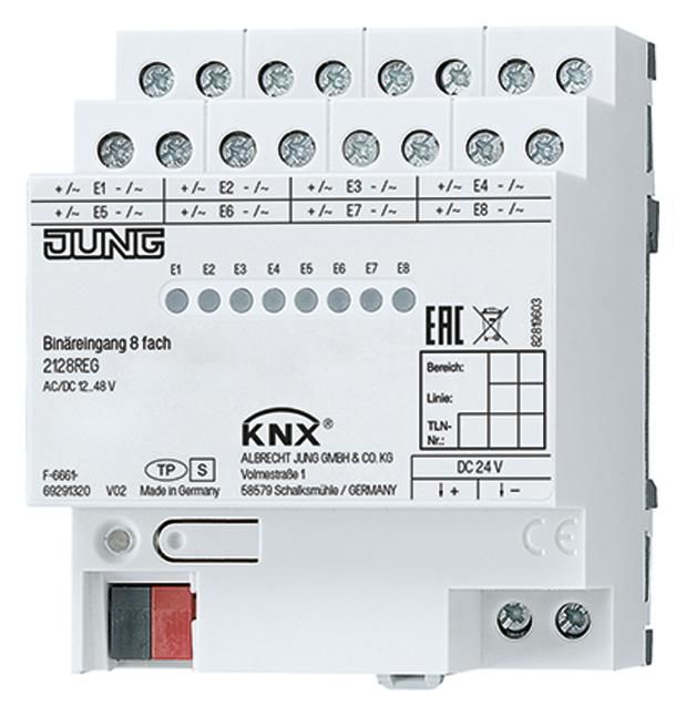 Jung 2128REG KNX-Binäreingang 8fach 8Eingänge 12-48VAC/DC Statusanzeige
