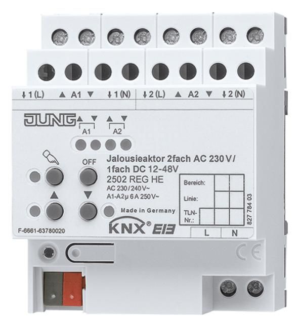 Jung 2502REGHE KNX Jalousieaktor 2fach 230VAC 1fach 12-48VDC Handbetätigung
