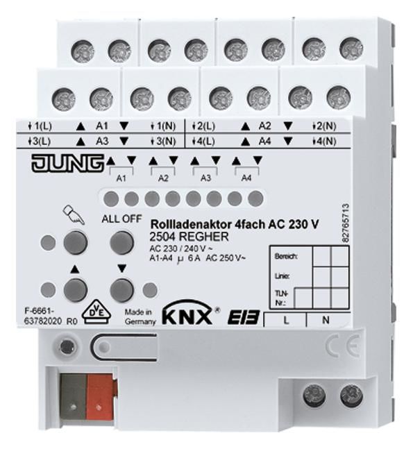 Jung 2504REGHER KNX Jalousieaktor 4fach 230VAC 2fach 12-48VDC Handbetätigung