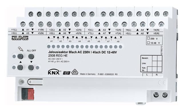 Jung 2508REGHE KNX Jalousieaktor 8fach 230VAC 4fach 12-48VDC Handbetätigung