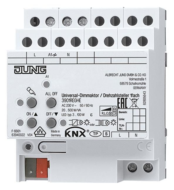 Jung 3901REGHE KNX Universal-Dimmaktor Drehzahlsteller 1fach 1-500W 4TE