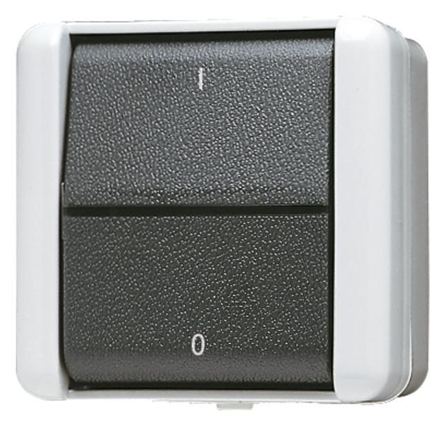 Farbe: Gehäuse grau, ähnlich wie RAL 7035, Wippe anthrazit, ähnlich wie RAL 7016