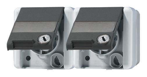 Jung 8220NAWSL AP/WG SCHUKO Steckdose 2f verdratet 2 Schlösser Schriftf.waager.WG800