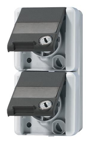 Jung 822NAWSL AP/WG SCHUKO Steckdose 2f verdratet 2 Schlösser Schriftf. Senkrecht WG800