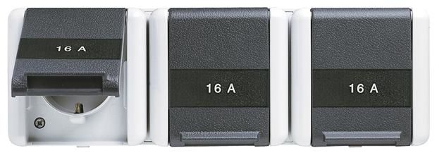 verdrahtet 16 A 250 V~ statt der Steckdosen können auch Schalter, Taster, Lichtsignale oder Steckdosen mit Schloß eingesetzt werden