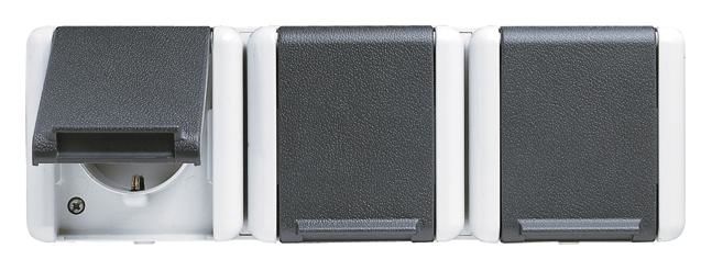Farbe: Gehäuse grau, ähnlich wie RAL 7035, Wippe anthrazit, ähnlich wie RAL 7016