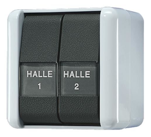Farbe: Gehäuse grau, ähnlich wie RAL 7035, Wippe anthrazit, ähnlich wie RAL 7016
