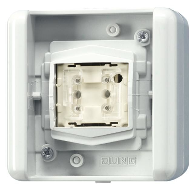 Bei der Ausführung 'Mittenstellung' erfolgt eine Betätigung der Wippe 'oben' bzw. 'unten', bei der Ausführung 'Tasterstellung' kann nur 'unten' eine Betätigung erfolgen. Der Taster BA ist nur mit einem Applikationsprogramm funktionsfähig, d.h. der Taster BA besteht aus dem Gerät (Hardware) und dem Applikationsprogramm (Software). Mit Hilfe der ETS können die Applikationsprogramme ausgewählt und die spezifischen Parameter und Adressen vergeben werden (siehe JUNG Produktdatenbank).