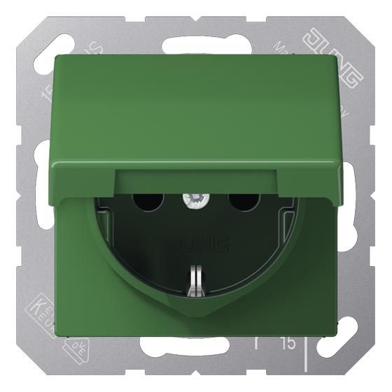 Jung AS1520BFKIKLGN SCHUKO Steckdose Klappdeckel bruchs. AS grün