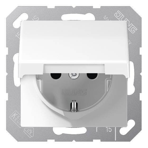 Jung AS1520NKLWW SCHUKO Steckdose ohne Kralle Klappdeckel Serie AS alpinweiß