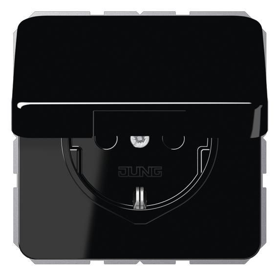 Jung CD1520BFKIKLSW SCHUKO-Steckdose mit Klappdeckel KI schwarz