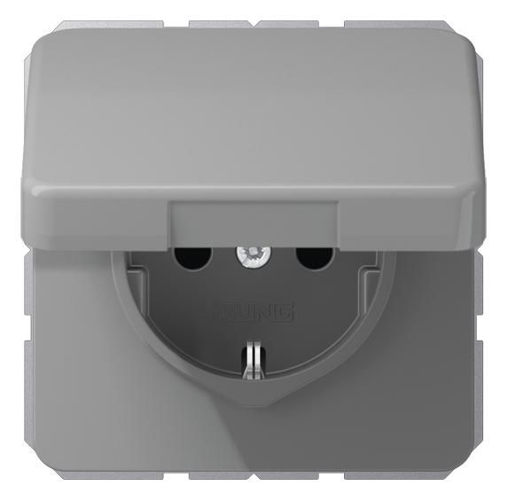 Jung CD1520BFKLGR SCHUKO Steckdose Klappdeckel bruchsicher grau