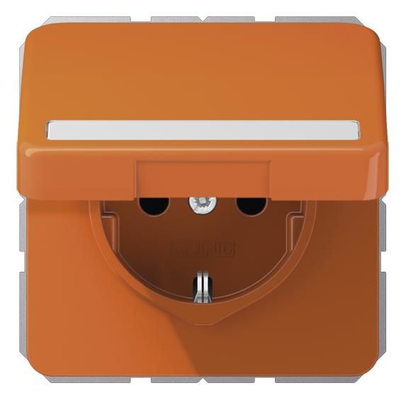 Jung CD1520BFNAKLO SCHUKO Steckdose Klappdeckel Schriftfeld bruchs. orange