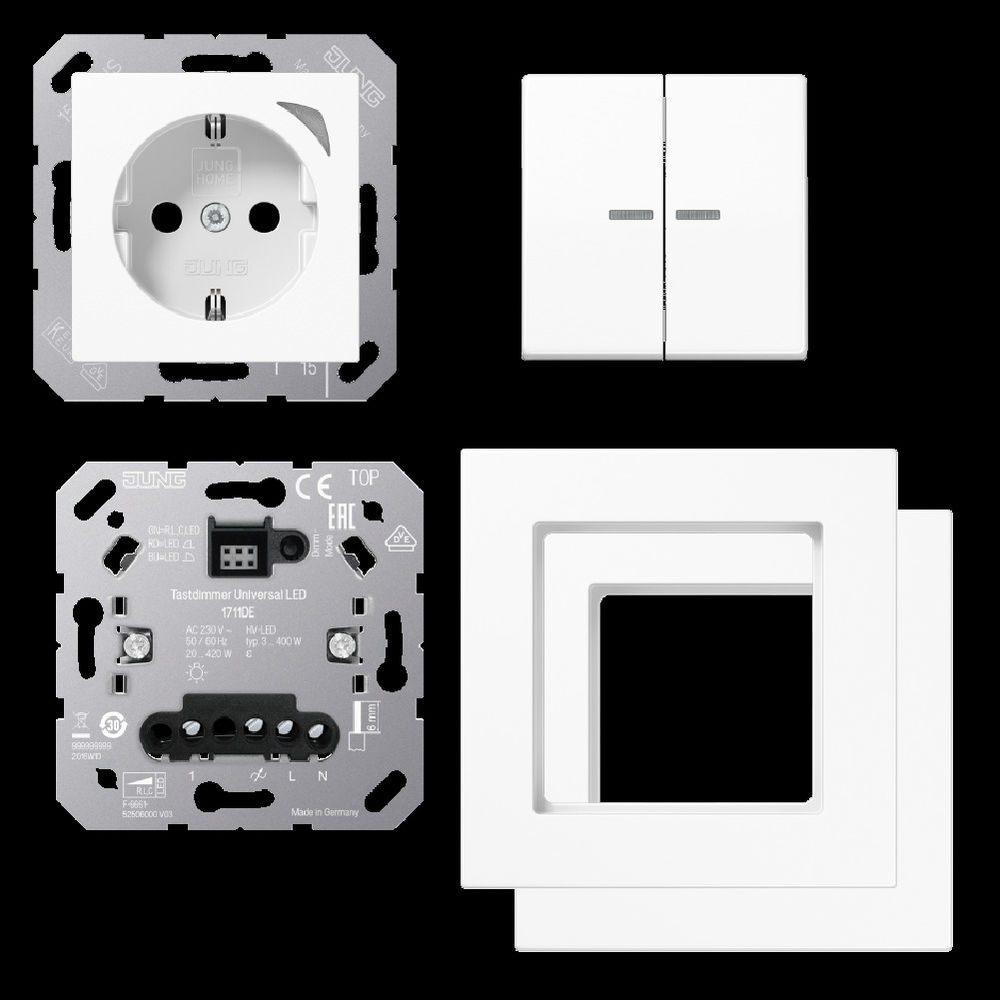 Jung JH-PAKET1AWW HOME Starterset bieten wir Ihnen immer zum bestmöglichen Preis an. Einen Rabatt von 2% auf Jung JH-PAKET1AWW HOME Starterset können wir Ihnen gewähren, wenn Sie bei der Bestellung die Zahlungsart Vorkasse wählen.