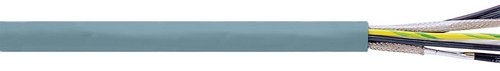 schwarze Adern mit fortlaufendem Ziffernaufdruck und grün-gelben Schutzleiter | | Mantel | PVC | | Farbe | grau | | Verseilung | Steueradern paariggeschirmte Steuerpaare und Versorgungsadern gemeinsam in Lagen | | Abschirmung | paarweise mit Alu-Folie, verzinnter Kupferbeidraht mit verzinntem Kupfergeflecht umflochten | | Bewicklung | paarweise mit PETP-FolieVlies | | Versorgungsadern | PVC |