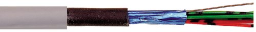 Gase; die Rauchgasentwicklung ist gering. | | Aufbau| Leiter | Kupferleiter blank eindrähtig 0,6 oder 0,8 mm Durchmesser | | Aderisolation | vernetztes Polymer HI1 nach VDE 0207 Teil 23 | | Außenmantel | Polyolefin-Mischung HM2 nach VDE 0207 Teil 24 halogenfrei und flammwidrig | | Verseilung | 4 Adern zum Sternvierer und 5 Sternvierer zum Bündel