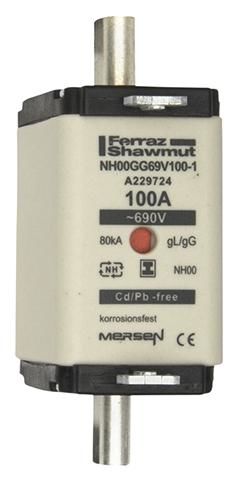 Lindner A229724 Mersen NH00GG69V100-1 Sicherungseinsatz NH gG Größe 00 AC690V 100A SGL Kombikennmel