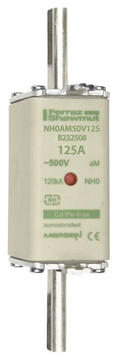 Lindner B232508 Mersen NH0AM50V125 Sicherungseinsatz NH aM Größe 0 AC500V 125A sfü Kombikennmelder