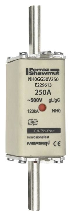 Lindner E229613 Mersen NH0GG50V250 Sicherungseinsatz NH gG Größe 0 AC500V 250A sfü Kombikennmelder