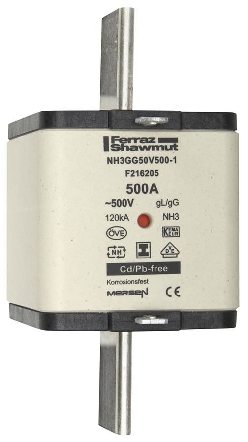 Lindner F216205 Mersen NH3GG50V500-1 Sicherungseinsatz NH gG Größe 3 AC500V 500A sfü Kombikennmeld