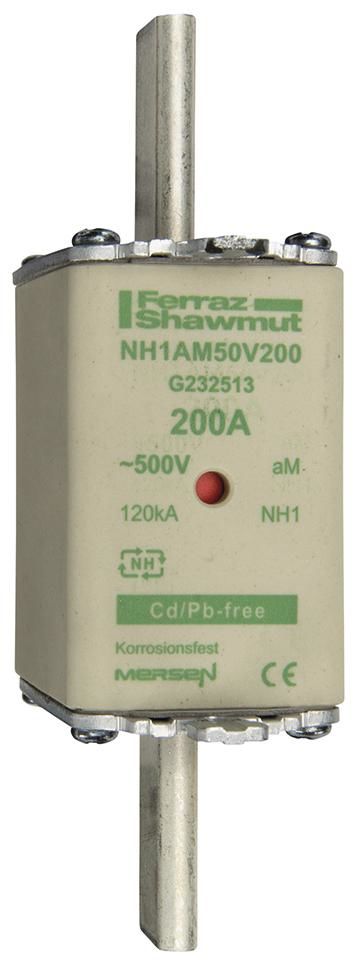 Lindner G232513 Mersen NH1AM50V200 Sicherungseinsatz NH aM Größe 1 AC500V 200A sfü Kombikennmelder