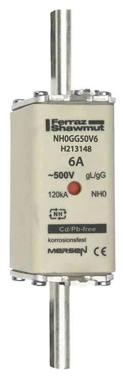 Lindner H213148 Mersen NH0GG50V6 Sicherungseinsatz NH gG Größe 0 AC500V 6A sfü Kombikennmelder