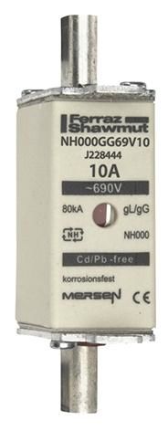 Lindner J228444 Mersen NH000GG69V10 Sicherungseinsatz NH gG Größe 000 AC690V 10A sfü Kombikennmelder