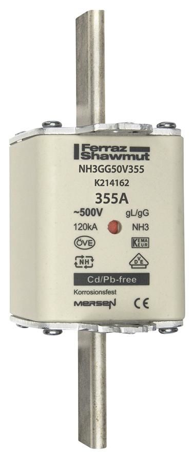 Lindner K214162 Mersen NH3GG50V355 Sicherungseinsatz NH gG Größe 3 AC500V 355A sfü Kombikennmelder