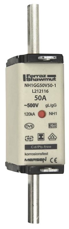 Lindner L212116 Mersen NH1GG50V50-1 Sicherungseinsatz NH gG Größe 1 AC500V 50A SGL Kombikennmelder
