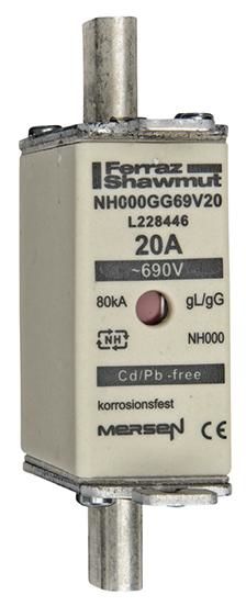 Lindner L228446 Mersen NH000GG69V20 Sicherungseinsatz NH gG Größe 000 AC690V 20A sfü Kombikennmelder