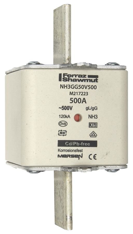 Lindner M217223 Mersen NH3GG50V500 Sicherungseinsatz NH gG Größe 3 AC500V 500A für Kombikennmelder