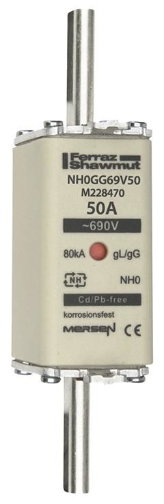 Lindner M228470 Mersen NH0GG69V50 Sicherungseinsatz NH gG Größe 0 AC690V 50A sfü Kombikennmelder