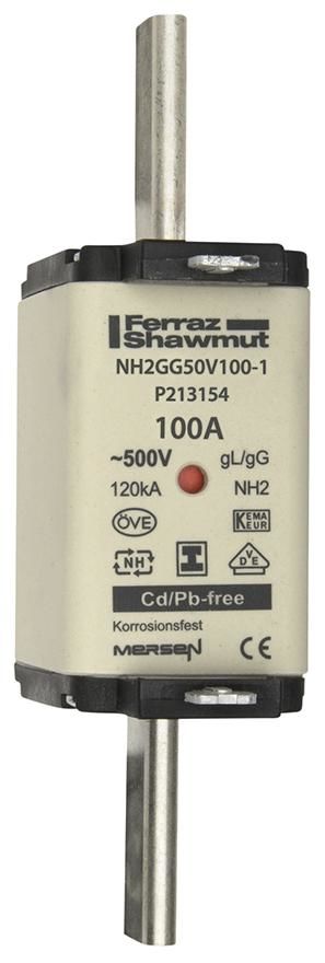 Lindner P213154 Mersen NH2GG50V100-1 Sicherungseinsatz NH gG Größe 2 AC500V 100A sfü Kombikennmelder