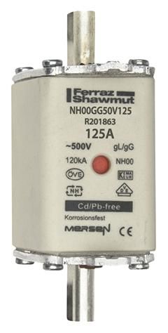 Lindner R201863 Mersen NH00GG50V125 Sicherungseinsatz NH gG Größe 00 AC500V 125A sfü Kombikennmelder