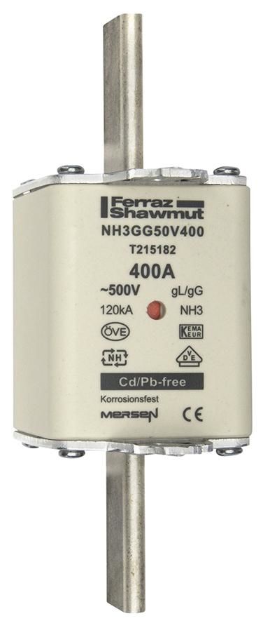 Lindner T215182 Mersen NH3GG50V400 Sicherungseinsatz NH gG Größe 3 AC500V 400A sfü Kombikennmelder
