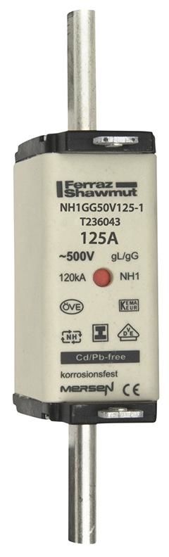 Lindner T236043 Mersen NH1GG50V125-1 Sicherungseinsatz NH gG Größe 1 AC500V 125A SGL Kombikennmeld