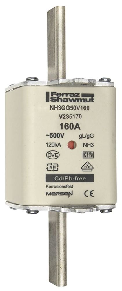Lindner V235170 Mersen NH3GG50V160 Sicherungseinsatz NH Sonderausführung gG Größe 3 AC500V 160A sfü