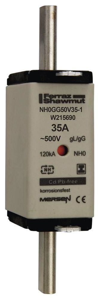 Lindner W215690 Mersen NH0GG50V35-1 Sicherungseinsatz NH gG Größe 0 AC500V 35A SGL Kombikennmelder