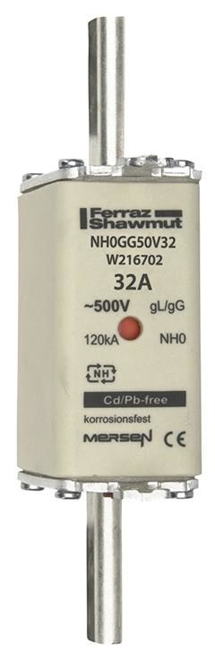 Lindner W216702 Mersen NH0GG50V32 Sicherungseinsatz NH gG Größe 0 AC500V 32A sfü Kombikennmelder