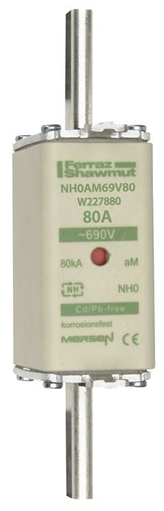 Lindner W227880 Mersen NH0AM69V80 Sicherungseinsatz NH aM Größe 0 AC690V 80A sfü Kombikennmelder